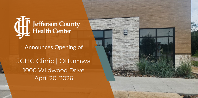 Jefferson County Health Center (JCHC) is announcing the planned opening of a new primary care clinic, JCHC Clinic | Ottumwa, located at 1000 Wildwood Drive, to open April 20, 2026.