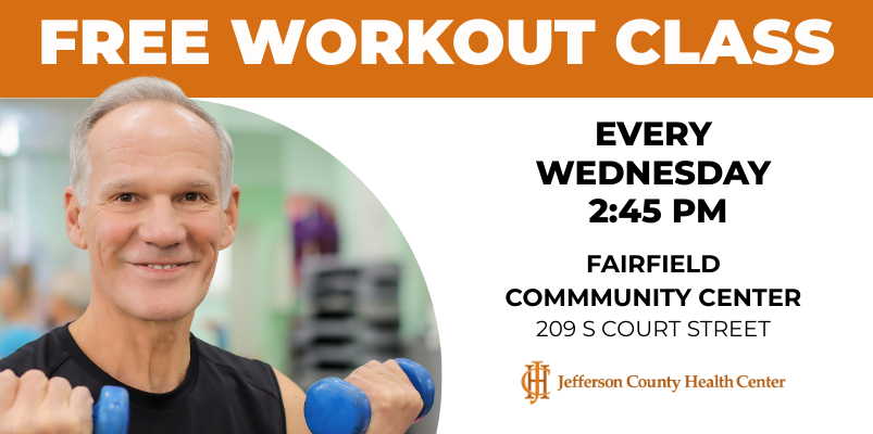 Join an energizing and welcoming workout led by trained therapists from Jefferson County Health Center, who will guide you through safe, fun, and accessible movements designed for all fitness levels. Whether you’re just starting your fitness journey, looking to stay active, or simply want to try something new, this class offers a supportive environment where everyone can feel comfortable and encouraged. Come solo or bring your friends, neighbors, or family members to move, laugh, connect, and feel great together! You’ll leave feeling refreshed, stronger, and more confident in your ability to keep moving toward better health. The class is free to attend, open to the community, and no registration is required—just show up and get moving!